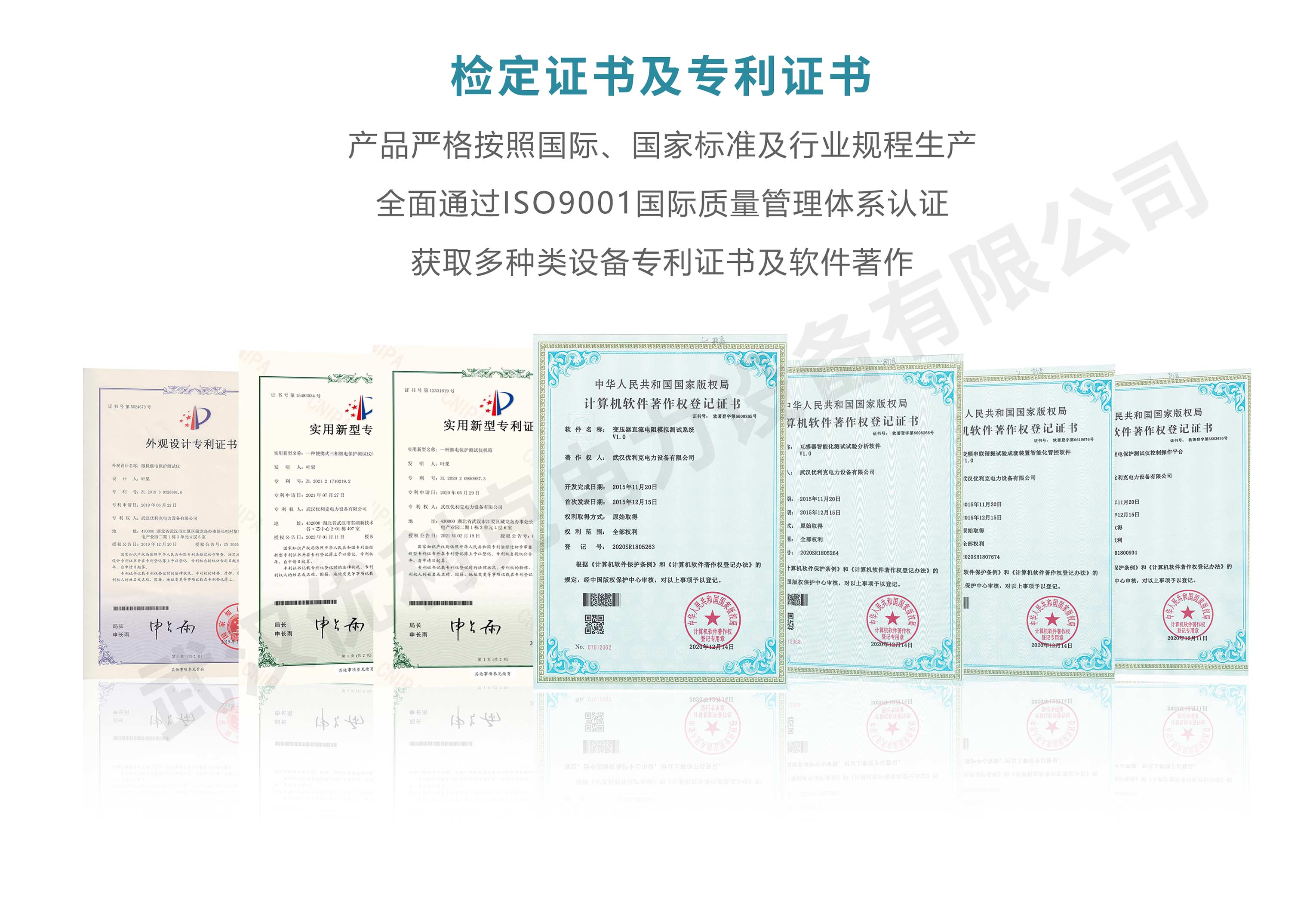 企業產品嚴格按照國際、國家標準及行業規程生產,通過國家、各省級、市級電力研究所、計量中心及電力權威部門的檢測,全面通過ISO9001國際質量管理體系認證、中華人民共和國制造計量器具許可證、GB/T19001-2016質量管理體系要求、GB/T24001-2016環境管理體系要求、GB/T45001-2020職業健康安全管理體系要求。