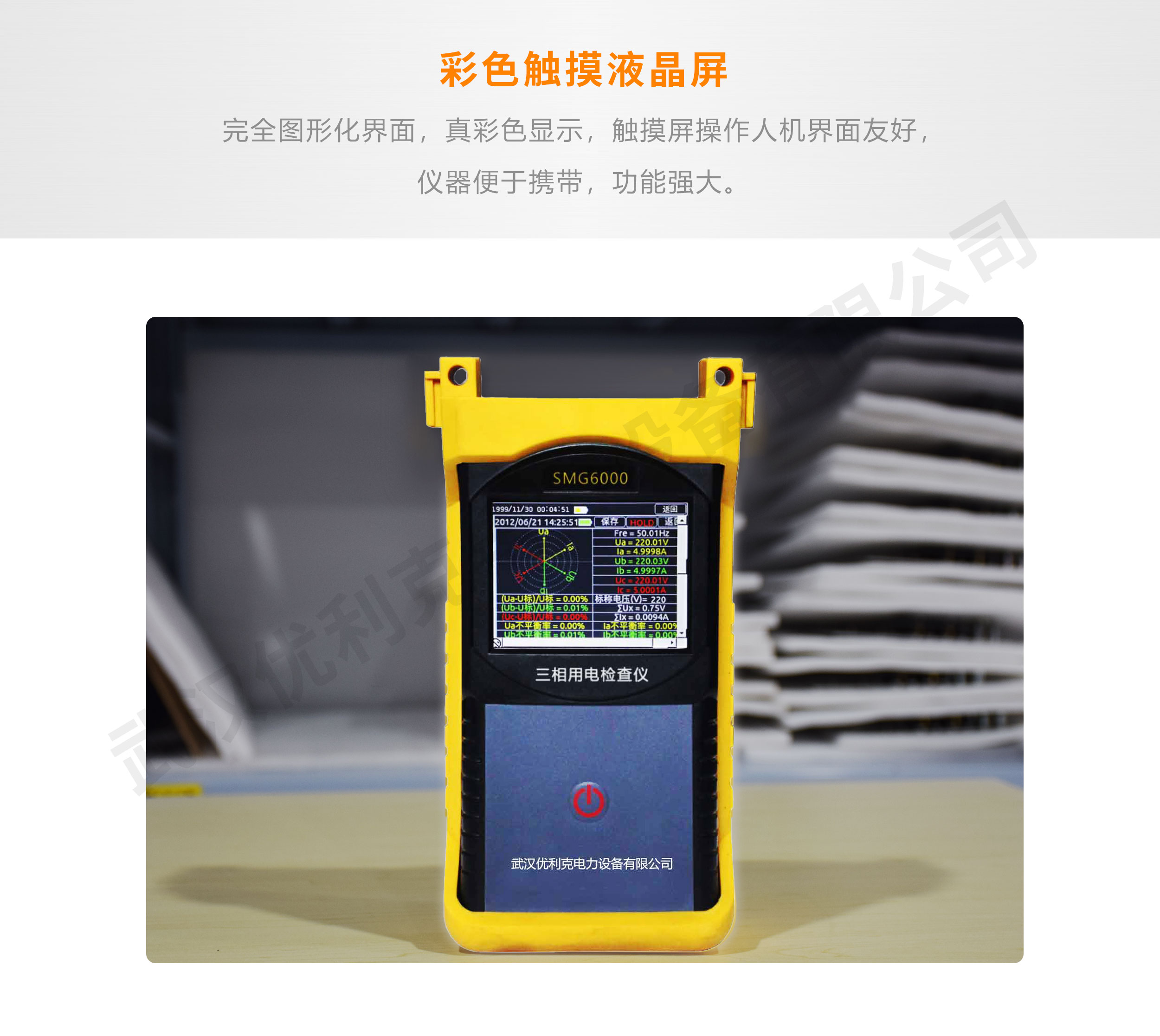 SMG6000三相用電檢查儀設計上采用高速ARM處理器作為下位機進行電參數的測量,完全圖形化界面,真彩色顯示,觸摸屏操作人機界面友好,儀器便于攜帶,功能強大。