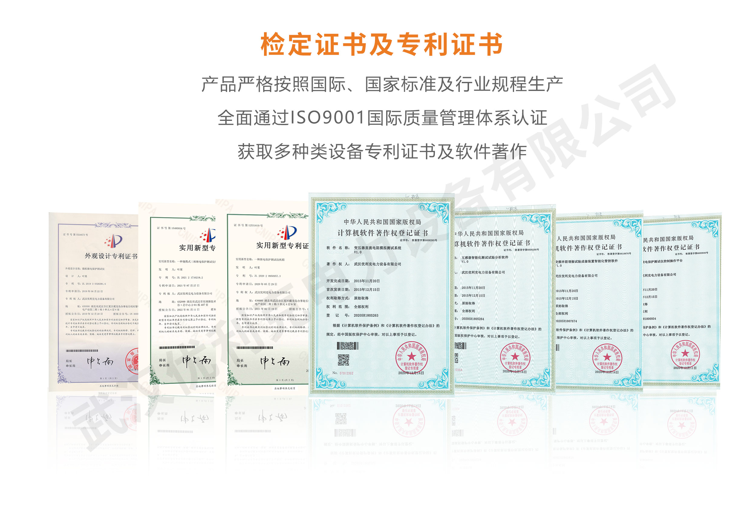 企業產品嚴格按照國際、國家標準及行業規程生產,通過國家、各省級、市級電力研究所、計量中心及電力權威部門的檢測,全面通過ISO9001國際質量管理體系認證、中華人民共和國制造計量器具許可證、GB/T19001-2016質量管理體系要求、GB/T24001-2016環境管理體系要求、GB/T45001-2020職業健康安全管理體系要求。
