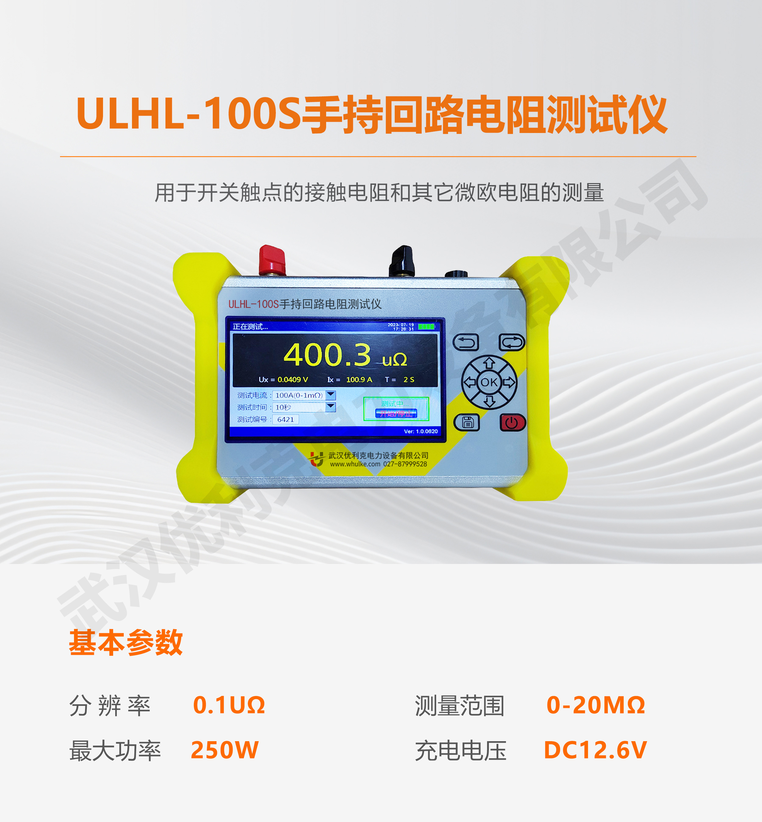 ULHL-100S手持回路電阻測(cè)試儀,用于開(kāi)關(guān)觸點(diǎn)的接觸電阻和其它微歐電阻的測(cè)量。儀器采用鋰電池供電,試驗(yàn)電流達(dá)100A,可以在強(qiáng)干擾下準(zhǔn)確測(cè)量。ULHL-100S為手持式儀器,體積小重量輕,特別適合現(xiàn)場(chǎng)應(yīng)用。