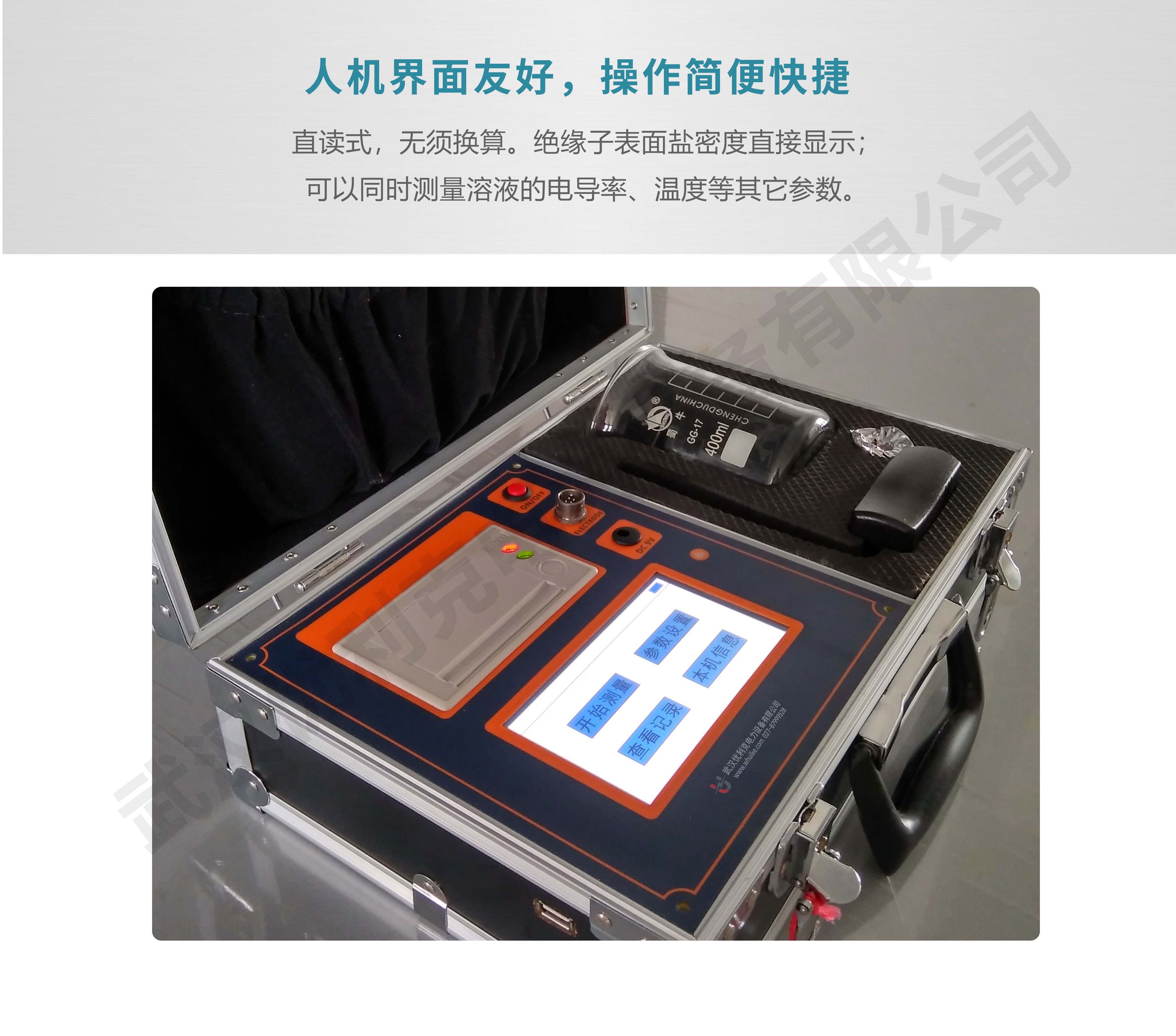 直讀式,無須換算。絕緣子表面鹽密度直接顯示;可以同時(shí)測(cè)量溶液的電導(dǎo)率、溫度等其它參數(shù)