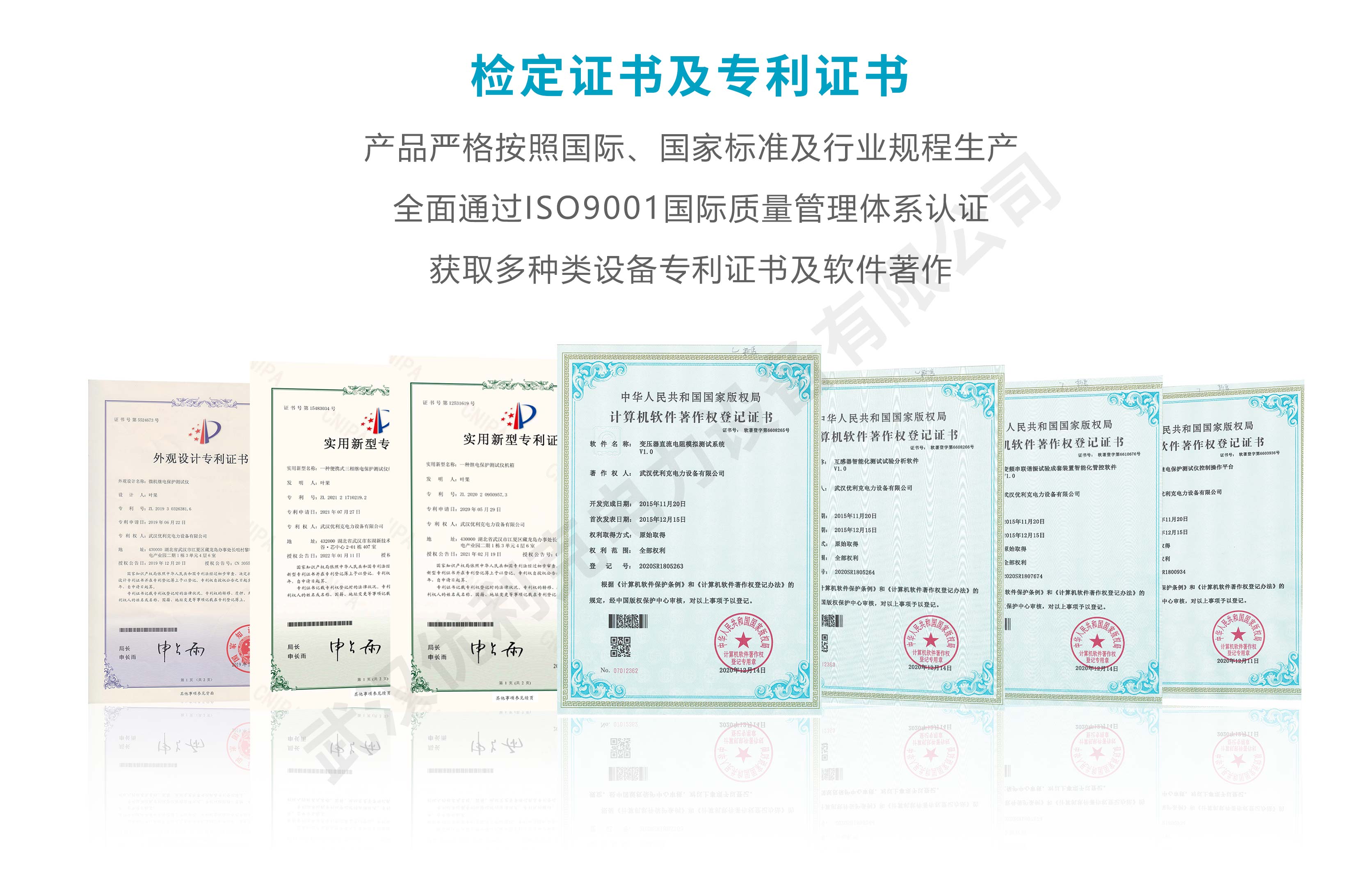 企業產品嚴格按照國際、國家標準及行業規程生產,通過國家、各省級、市級電力研究所、計量中心及電力權威部門的檢測,全面通過ISO9001國際質量管理體系認證、中華人民共和國制造計量器具許可證、GB/T19001-2016質量管理體系要求、GB/T24001-2016環境管理體系要求、GB/T45001-2020職業健康安全管理體系要求。